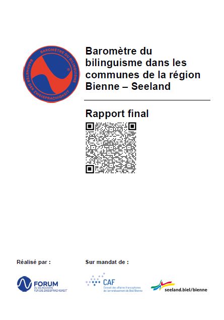 Le Conseil des affaires francophones de l’arrondissement de Biel/Bienne (CAF) et seeland.biel/bienne ont initié une étude approfondie sur la place du bilinguisme dans les arrondissements administratifs de Biel/Bienne et du Seeland. Le Forum du bilinguisme a été mandaté pour la réalisation de cette étude. le Baromètre du bilinguisme offre un panorama complet des pratiques actuelles, des attentes et des perspectives en matière de diversité linguistique dans 61 communes – dont 59 sont officiellement germanophones et deux bilingues (Biel/Bienne et Evilard).